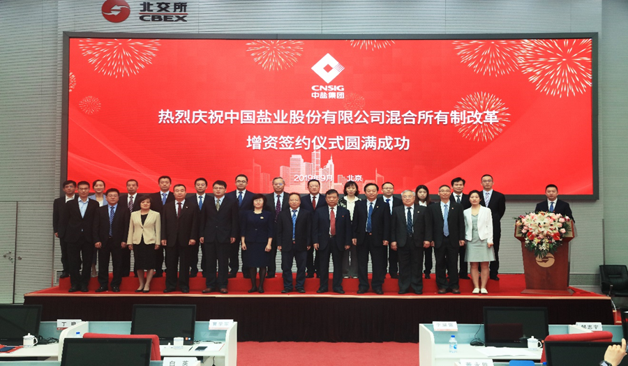 2019年9月19日,中鹽集團增資項目(mu)簽約儀(yi)式在北京產權(quan)交易所舉行。公司成(cheng)功(gong)引入投(tou)資者13家,總投(tou)資額30.6億元。