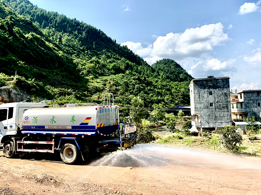 改善生活環境。項目對民工(gong)(gong)駐(zhu)地防(fang)暑(shu)降(jiang)溫設備進行普查(cha),確保所有宿舍空調(diao),以及食堂、洗漱間(jian)、廁所、淋浴間(jian)等設備處于正常(chang)可用(yong)狀態,為農民工(gong)(gong)營造(zao)衛生舒適的生活環境。圖為施工(gong)(gong)現場降(jiang)溫除塵(chen)作業。