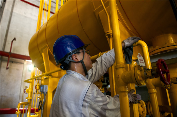 華電萊州公司檢修人員對管道設備表面進行清理,保持設備清潔。