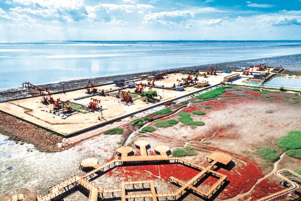 蘆葦、堿蓬草與采油作業區相融共生、生態環保成長