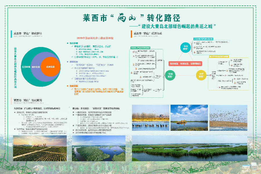 為助(zhu)力萊(lai)西(xi)(xi)(xi)市(shi)實(shi)現(xian)“既(ji)要(yao)綠(lv)水(shui)青山(shan)又要(yao)金山(shan)銀山(shan)”的(de)目標,中國(guo)(guo)節(jie)能自2017年(nian)起便承擔萊(lai)西(xi)(xi)(xi)市(shi)垃圾綜合處理項目。在此基(ji)礎上,2020年(nian)雙方(fang)在“兩山(shan)論”創建(jian)方(fang)面進一(yi)步開展合作。中國(guo)(guo)節(jie)能多次赴萊(lai)西(xi)(xi)(xi)市(shi)實(shi)地(di)(di)考察交流,通過深度調研分析,凝練挖掘萊(lai)西(xi)(xi)(xi)市(shi)連(lian)續舉辦兩屆世界休閑(xian)體育大會打造“休閑(xian)之都”,實(shi)施大沽河沿(yan)岸“生態修(xiu)復+萬(wan)畝(mu)采(cai)摘(zhai)園”發(fa)(fa)展生態農業(ye)(ye),姜山(shan)鎮“濕地(di)(di)生態涵養+搶抓戰新產業(ye)(ye)機遇+金融(rong)產業(ye)(ye)雙輪驅動”貧窮大洼變身經濟強鎮,九(jiu)頂(ding)莊園“礦山(shan)修(xiu)復+葡(pu)萄酒莊”打造全產業(ye)(ye)鏈葡(pu)萄小(xiao)鎮等(deng)優秀實(shi)踐經驗,聚焦萊(lai)西(xi)(xi)(xi)市(shi)經濟、社會、環境發(fa)(fa)展的(de)內在根本需求(qiu),為萊(lai)西(xi)(xi)(xi)市(shi)總(zong)結設計(ji)了以生態農業(ye)(ye)為根基(ji),新型工業(ye)(ye)為支(zhi)撐,引領、組織與體制(zhi)機制(zhi)為保(bao)障(zhang)的(de)現(xian)代發(fa)(fa)展模式。同(tong)時,針對萊(lai)西(xi)(xi)(xi)市(shi)目前存在的(de)薄弱環節(jie),中國(guo)(guo)節(jie)能提出了六大項二(er)十一(yi)小(xiao)項重點任務(wu),并(bing)協助(zhu)萊(lai)西(xi)(xi)(xi)市(shi)成(cheng)功創建(jian)“綠(lv)水(shui)青山(shan)就是(shi)金山(shan)銀山(shan)”實(shi)踐創新基(ji)地(di)(di)。