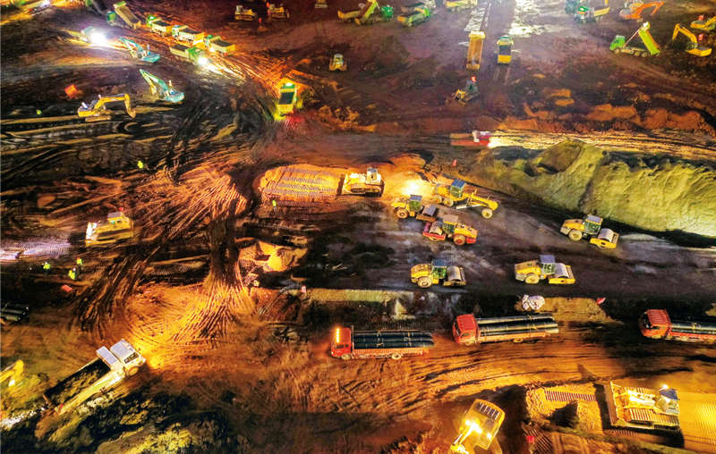 在抗擊新冠肺炎疫情過程中,國資國企聞令而動、勇挑重擔,主動服務國家防疫大局,在黨和人民最需要的時候挺身而出、不辱使命。圖為2020年1月26日,在武漢火神山醫院建設現場的中建三局施工人員挑燈夜戰,實行24小時不間斷作業。