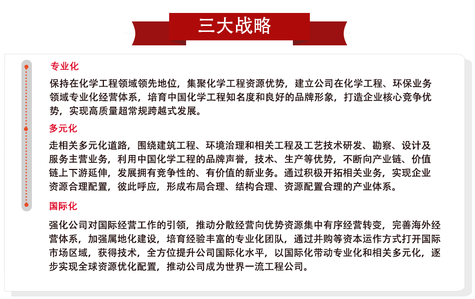 中國(guo)化學堅持創(chuang)新驅(qu)動發(fa)展戰略(lve),目(mu)前擁有12家(jia)國(guo)家(jia)級企業(ye)技術(shu)中心、1家(jia)國(guo)家(jia)能(neng)源研發(fa)中心、5家(jia)省級企業(ye)技術(shu)中心、8家(jia)省級工程技術(shu)研究中心、6家(jia)博士(shi)后科(ke)研工作站(zhan),19家(jia)國(guo)家(jia)高(gao)新技術(shu)企業(ye),支撐(cheng)公司技術(shu)創(chuang)新和研發(fa)工作。