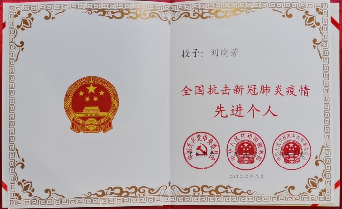 9月8日上午,全國(guo)(guo)抗擊(ji)(ji)新(xin)(xin)(xin)冠肺(fei)炎疫(yi)情表(biao)(biao)彰(zhang)大會在北(bei)京(jing)人(ren)民大會堂隆重舉行(xing)。中共中央總書記、國(guo)(guo)家(jia)主(zhu)席、中央軍委(wei)主(zhu)席習近平向國(guo)(guo)家(jia)勛章(zhang)和國(guo)(guo)家(jia)榮譽(yu)稱號獲(huo)得者頒授勛章(zhang)獎章(zhang)并(bing)發表(biao)(biao)重要講(jiang)話。大會對全國(guo)(guo)抗擊(ji)(ji)新(xin)(xin)(xin)冠肺(fei)炎疫(yi)情先進(jin)(jin)(jin)個人(ren)、先進(jin)(jin)(jin)集體進(jin)(jin)(jin)行(xing)了(le)表(biao)(biao)彰(zhang),中國(guo)(guo)化學工程(cheng)劉曉芳獲(huo)“全國(guo)(guo)抗擊(ji)(ji)新(xin)(xin)(xin)冠肺(fei)炎疫(yi)情先進(jin)(jin)(jin)個人(ren)”殊榮。這份沉(chen)甸甸的榮譽(yu)承(cheng)載著那段不平凡的日子。