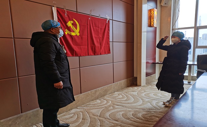 2月28日,劉(liu)曉芳在(zai)抗(kang)疫一線火(huo)線入(ru)黨(dang)(dang),她在(zai)莊嚴的黨(dang)(dang)旗(qi)下鄭重(zhong)宣(xuan)誓,志(zhi)愿加入(ru)中國共產黨(dang)(dang)。