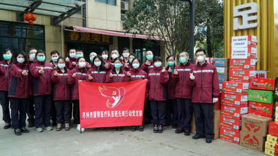 作為蘇州第(di)一批支援湖(hu)北(bei)醫療隊“醫路先鋒”行動黨支部書記,施曉松(song)出發前夜(ye)召開(kai)第(di)一次支部會議,號召每一位黨員要在抗疫一線起到先鋒模(mo)范作用,支部就是(shi)堅(jian)強的(de)戰(zhan)斗堡(bao)壘。