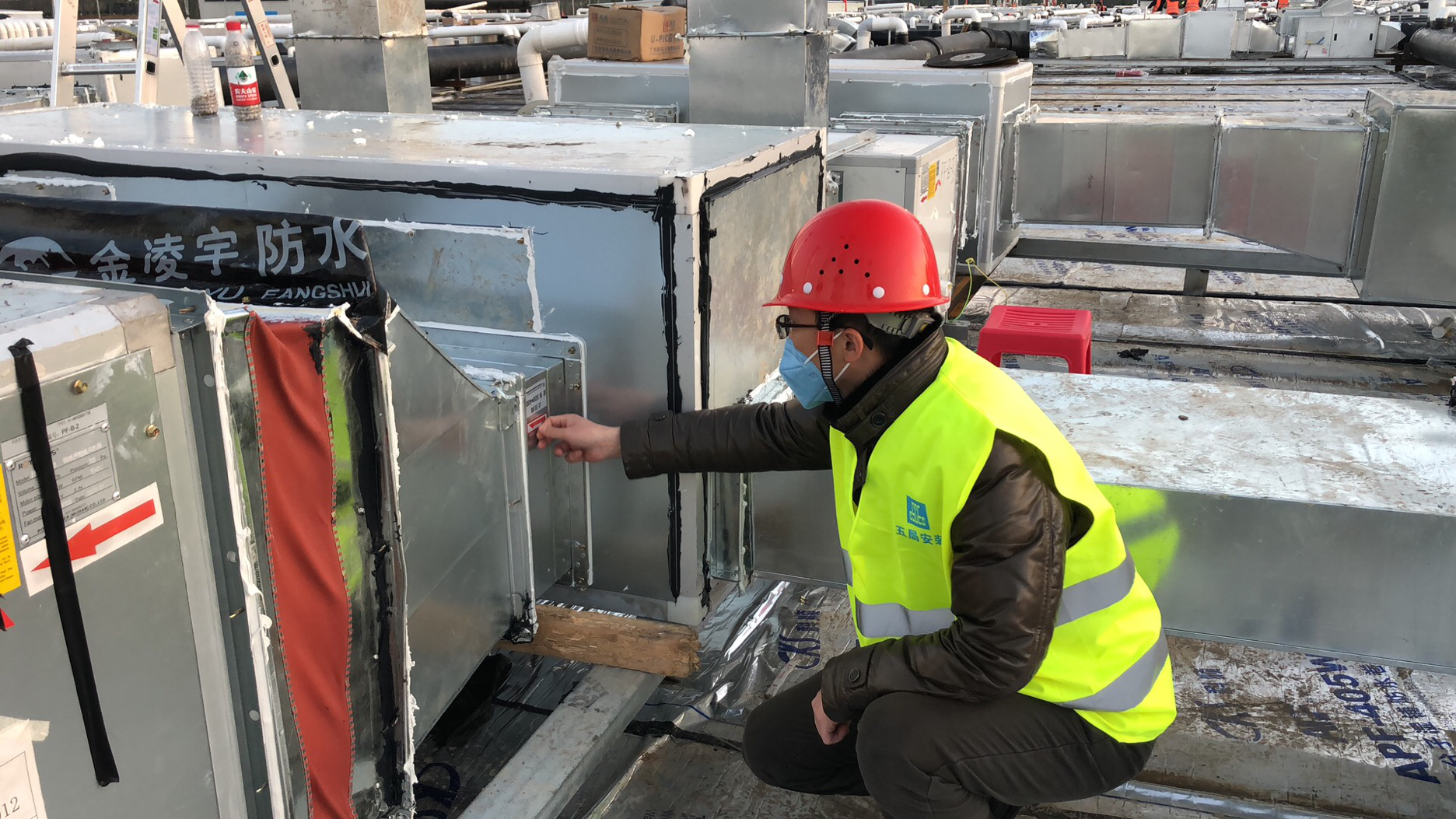 就(jiu)這樣干了兩(liang)天,劉(liu)斌(bin)心里(li)才剛剛有點底(di),2月4日,指揮部召開臨時會議(yi),有兩(liang)棟病房的室(shi)外通風任務急需支援!怎么辦?劉(liu)斌(bin)站(zhan)了出來,我(wo)們五局離(li)得(de)最近,我(wo)們上!