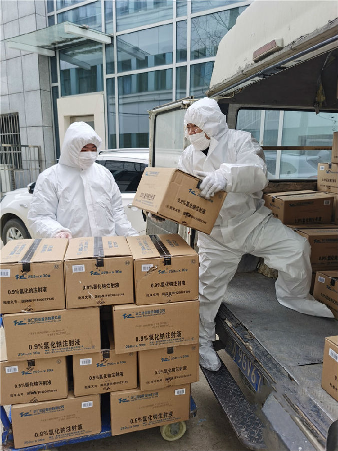 農歷大年初三下午,通用技術集團中國醫藥重藥陽光為武漢普愛西院配送防控藥品。