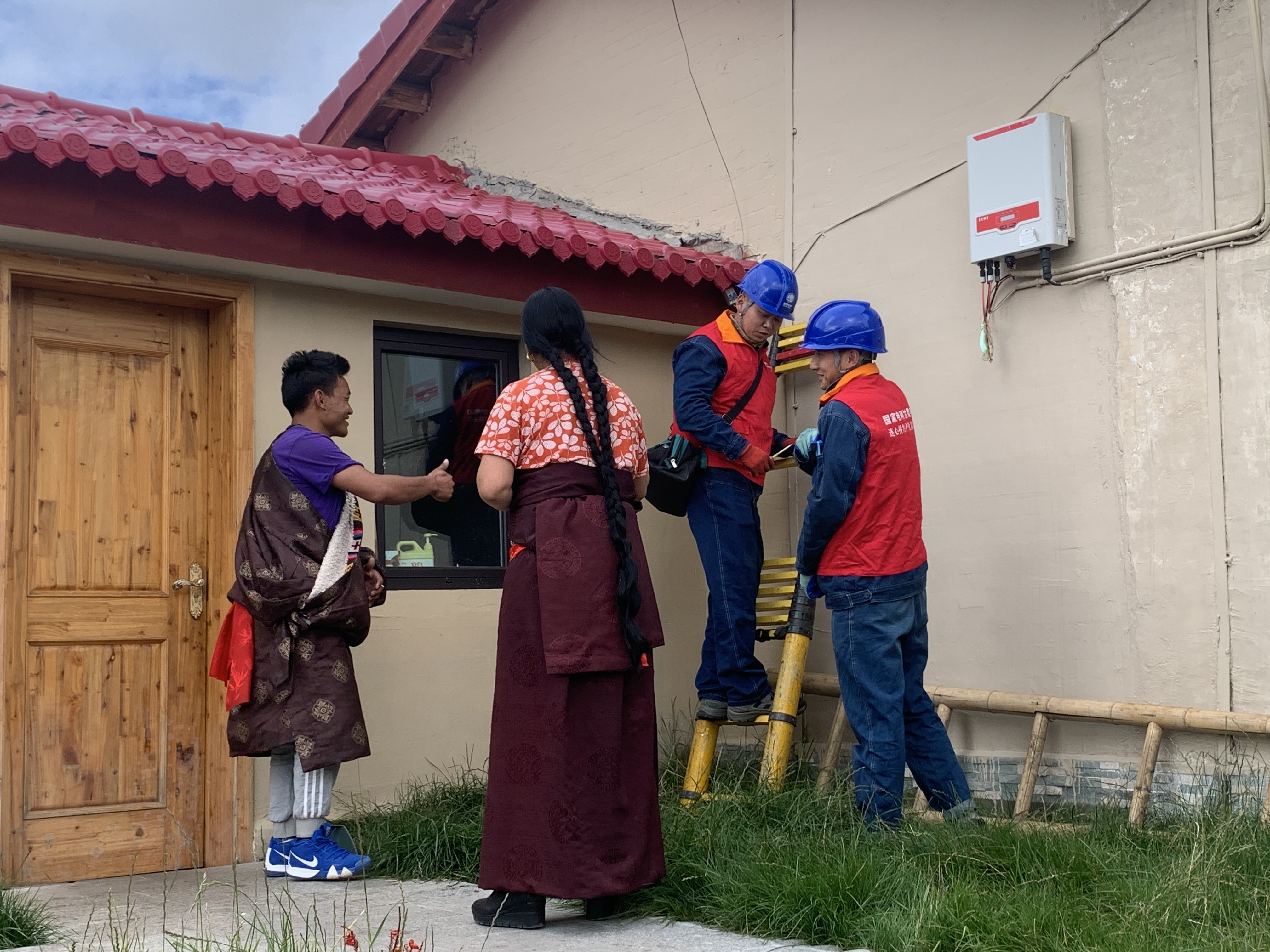 6月5日,在安多縣扎仁鎮果加村,當地215戶牧民迎來了“亮燈通大網電”的日子。