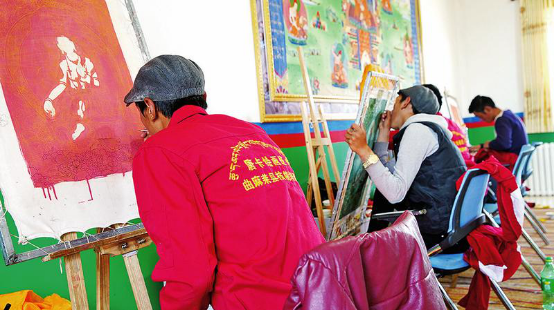 當地群眾在國家能源集團援建的曲麻萊技能培訓中心免費學習唐卡制作技能