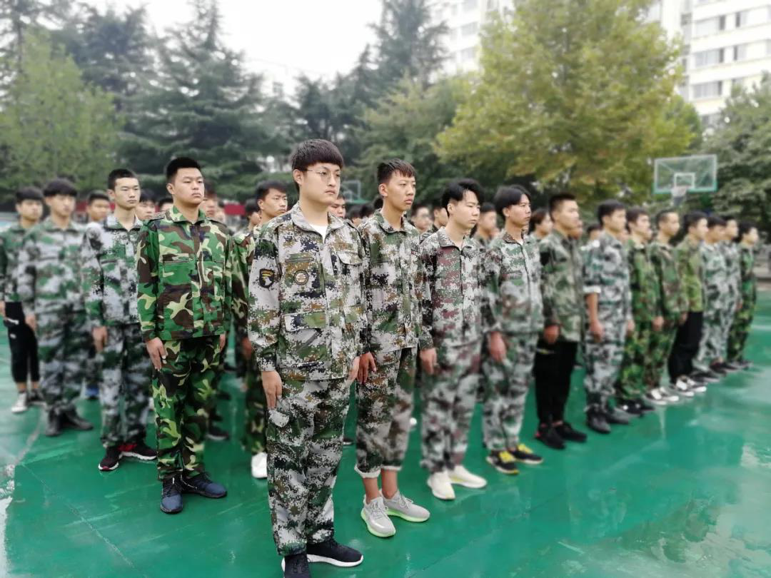 以“宏志班”為依托,招收新蔡縣、貞豐縣貧困家庭適齡學員和因貧輟學的孩子。圖為宏志班學生軍訓。