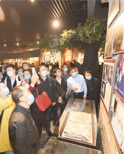 游客在“半條被子的溫暖”專題陳列館內參觀。