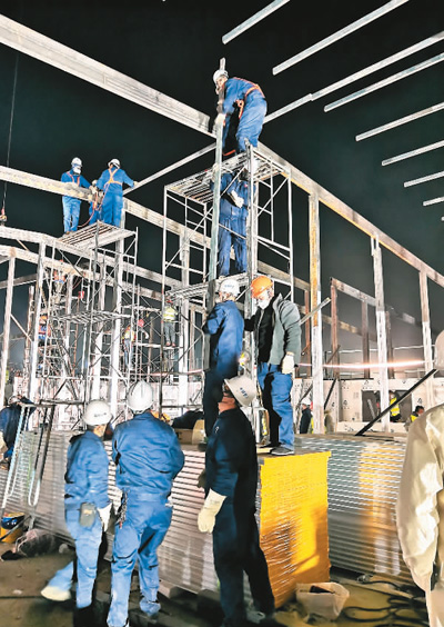 1月31日凌晨(chen)1時,經(jing)過23個小時不眠不休的緊(jin)張施工(gong),突擊(ji)隊終于提前1天完(wan)成了19榀鋼桁架(jia)的拼裝任(ren)務。