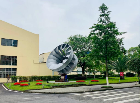 在東方電機園區,展示著從龔嘴水電站“功成身退”的水輪機轉輪。