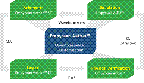 【技術產品簡介】模(mo)擬設(she)計(ji)(ji)全流程(cheng)(cheng)EDA系統,可(ke)完整支持(chi)28nm及以上工藝,是全球四大(da)模(mo)擬設(she)計(ji)(ji)全流程(cheng)(cheng)解決方案之(zhi)一(yi),也是除美國三(san)大(da)EDA巨頭之(zhi)外(wai)的(de)唯一(yi)一(yi)套(tao)模(mo)擬全流程(cheng)(cheng)解決方案。該解決方案已通(tong)過TowerJazz的(de)認證(zheng),進入全球最(zui)大(da)的(de)模(mo)擬晶(jing)圓制造(zao)廠TowerJazz的(de)設(she)計(ji)(ji)參考(kao)流程(cheng)(cheng),其中(zhong)高(gao)精度高(gao)速模(mo)擬電(dian)路仿真產品技術達到國際領(ling)先水平。