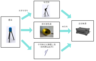 主要技術是兩個具備旋轉特性的基站發射的激光信號,形成激光空間區域,建立掃描測量場,接收器分別接收兩個基站發出的激光信號,轉換為電信號后送入總控制器中的信號處理器,利用時間序列信息解算出空間坐標。
