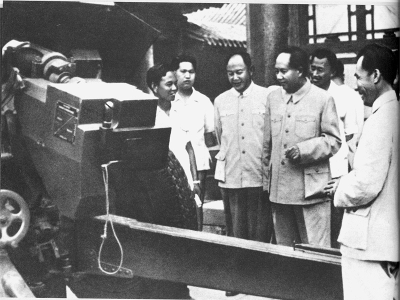 1958年6月6日,毛澤東主席在國防工業匯報展覽會兵器館仔細觀看54式122毫米榴彈炮
