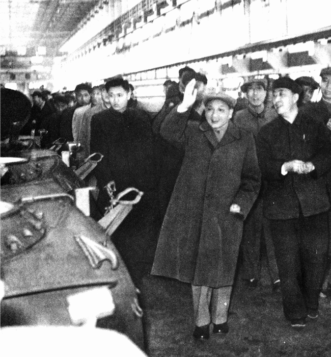 1964年4月8日,鄧小平視察中國兵器617廠時在總裝車間向干部職工招手致意