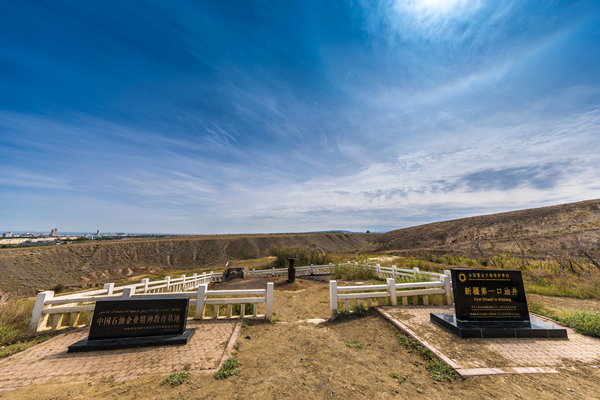 1911年王樹楠主編的《新疆圖志?實業二》中記下了獨山子第一口油井出油這一具有重大歷史意義的壯觀一幕:“挖油機一座,運至獨山子開掘油井,油井深七、八丈,油井內聲如波濤,油氣蒸騰,直涌而出、以火燃之,焰高數尺”。這是新疆近代史上,用機器打出的第一口油氣井,是新疆近代石油工業的開端,也是中國最早的工業油井之一。