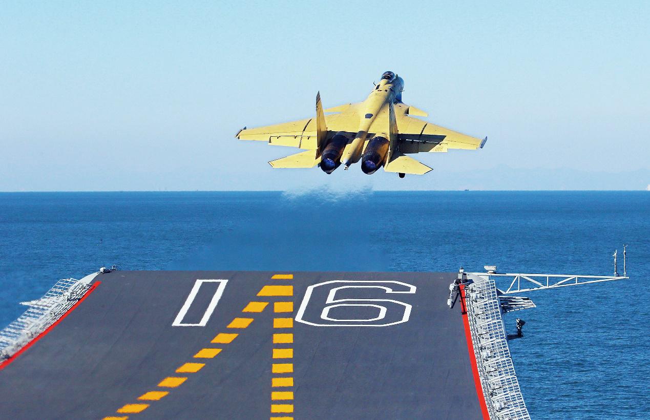 2012年第一種重型艦載機殲-15在遼寧艦成功起降
