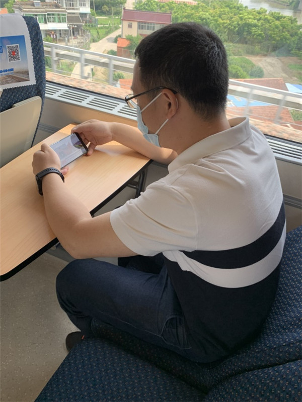 中國信科員工出差途中在高鐵上觀看直播