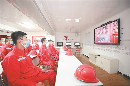 7時(shi)20分(fen),遼河油(you)田(tian)3000余(yu)(yu)名干部(bu)員(yuan)工(gong)(gong)(gong)齊聚機(ji)關大(da)樓門前(qian)廣(guang)場(chang),唱(chang)響《唱(chang)支山歌給黨聽》,并組(zu)(zu)織6萬余(yu)(yu)名干部(bu)員(yuan)工(gong)(gong)(gong)通(tong)過(guo)(guo)(guo)廣(guang)播(bo)(bo)、電(dian)視、手機(ji)等形式收(shou)聽收(shou)看(kan)(kan)(kan)(kan)大(da)會盛況(kuang)。上海(hai)銷售在機(ji)關設立主會場(chang),17家分(fen)公(gong)司、直(zhi)管股權企業、160座加油(you)站在安排好生(sheng)產(chan)經營(ying)工(gong)(gong)(gong)作的同時(shi),分(fen)別組(zu)(zu)織集中觀看(kan)(kan)(kan)(kan),共809名黨員(yuan)干部(bu)和(he)員(yuan)工(gong)(gong)(gong)收(shou)看(kan)(kan)(kan)(kan)了盛會。在廣(guang)東石化煉化一體(ti)化項目(mu)現場(chang),建設單(dan)位寰球公(gong)司的1060名干部(bu)員(yuan)工(gong)(gong)(gong)利用工(gong)(gong)(gong)休時(shi)間(jian),通(tong)過(guo)(guo)(guo)手機(ji)認真聆聽習近平(ping)總(zong)書記講(jiang)話。在塔克拉(la)瑪(ma)干沙漠邊緣英買470-H6井駐(zhu)守的川慶鉆探新疆分(fen)公(gong)司70598隊黨員(yuan),克服時(shi)差早(zao)早(zao)起(qi)來,通(tong)過(guo)(guo)(guo)電(dian)視集體(ti)觀看(kan)(kan)(kan)(kan)直(zhi)播(bo)(bo)。安全(quan)環(huan)保(bao)院(yuan)QZ管道(dao)環(huan)境監理(li)項目(mu)部(bu)員(yuan)工(gong)(gong)(gong)在海(hai)拔4700多米的施工(gong)(gong)(gong)現場(chang),通(tong)過(guo)(guo)(guo)電(dian)腦收(shou)看(kan)(kan)(kan)(kan)盛況(kuang)。工(gong)(gong)(gong)程技術(shu)研究院(yuan)黨員(yuan)群眾千余(yu)(yu)人分(fen)別在北京、武(wu)漢、荊州(zhou)三地,通(tong)過(guo)(guo)(guo)學(xue)習強國、鐵人先鋒APP等平(ping)臺觀看(kan)(kan)(kan)(kan)直(zhi)播(bo)(bo)。