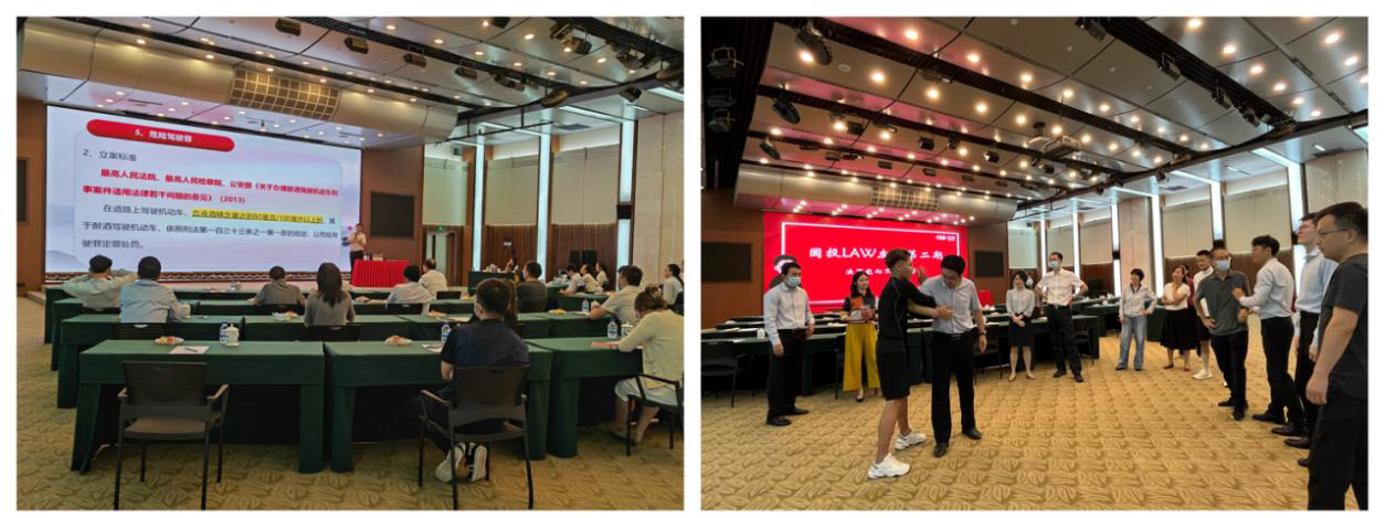 在提前調研(yan)集(ji)團(tuan)辦公室(shi)普(pu)法(fa)(fa)(fa)需(xu)求(qiu)的基(ji)礎上,法(fa)(fa)(fa)律合規部圍(wei)繞唐(tang)山打人(ren)案(an)、昆(kun)山龍哥(ge)案(an)等(deng)員工關(guan)心(xin)的社會熱點案(an)例,邀請律所合伙人(ren)及(ji)教(jiao)練現場(chang)(chang)授課,一方面以案(an)為(wei)鑒,深入淺出(chu)講解正當(dang)防(fang)衛(wei)(wei)、尋釁滋事、故意傷害等(deng)法(fa)(fa)(fa)律知識(shi)點,明晰法(fa)(fa)(fa)律紅線,并給出(chu)應對類似(si)情況(kuang)的法(fa)(fa)(fa)律建議;另(ling)一方面,結合律師意見,由(you)搏擊教(jiao)練現場(chang)(chang)教(jiao)授正確(que)實(shi)用的防(fang)衛(wei)(wei)技能,提升員工在危急時刻的自我保護(hu)能力。本次活動(dong)通過趣(qu)味問答、有(you)獎(jiang)競猜、現場(chang)(chang)演練等(deng)環節,有(you)效(xiao)提升普(pu)法(fa)(fa)(fa)的互動(dong)性、實(shi)用性,讓(rang)員工在輕(qing)松愉(yu)悅的氛圍(wei)中切實(shi)提升尊(zun)法(fa)(fa)(fa)學法(fa)(fa)(fa)守法(fa)(fa)(fa)用法(fa)(fa)(fa)的意識(shi)和能力。