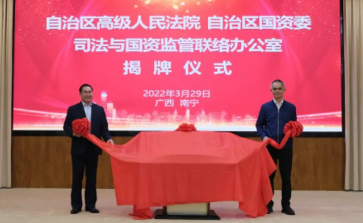 近日,廣(guang)西自(zi)(zi)(zi)治(zhi)區(qu)(qu)高院、國(guo)資(zi)(zi)委(wei)(wei)(wei)司(si)法(fa)與(yu)(yu)國(guo)資(zi)(zi)監管聯絡辦公室揭(jie)牌(pai)儀(yi)式(shi)在自(zi)(zi)(zi)治(zhi)區(qu)(qu)國(guo)資(zi)(zi)委(wei)(wei)(wei)舉行。自(zi)(zi)(zi)治(zhi)區(qu)(qu)高院黨(dang)(dang)組副(fu)書記、常(chang)務副(fu)院長出席(xi)揭(jie)牌(pai)儀(yi)式(shi)并(bing)講話(hua),自(zi)(zi)(zi)治(zhi)區(qu)(qu)國(guo)資(zi)(zi)委(wei)(wei)(wei)黨(dang)(dang)委(wei)(wei)(wei)副(fu)書記、主(zhu)任(ren)在揭(jie)牌(pai)儀(yi)式(shi)上致辭,揭(jie)牌(pai)儀(yi)式(shi)由(you)自(zi)(zi)(zi)治(zhi)區(qu)(qu)國(guo)資(zi)(zi)委(wei)(wei)(wei)黨(dang)(dang)委(wei)(wei)(wei)委(wei)(wei)(wei)員、副(fu)主(zhu)任(ren)主(zhu)持。司(si)法(fa)與(yu)(yu)國(guo)資(zi)(zi)監管聯絡辦公室揭(jie)牌(pai)成(cheng)(cheng)立,是繼2012年雙方簽署《加強司(si)法(fa)審(shen)判(pan)與(yu)(yu)國(guo)資(zi)(zi)監管法(fa)制(zhi)建設聯席(xi)機制(zhi)備忘錄(lu)》以來又一重大(da)合作成(cheng)(cheng)果,標(biao)志著司(si)法(fa)審(shen)判(pan)與(yu)(yu)國(guo)資(zi)(zi)監管聯動機制(zhi)建設進入常(chang)態化、制(zhi)度化的新階(jie)段。