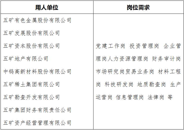 (更多職位信息見企業(ye)招聘(pin)官方網(wang)站(zhan):zhaopin.minmetals.com.cn)