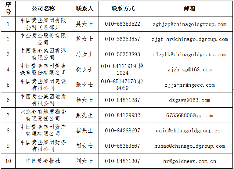 招聘單位(wei)(wei)及崗位(wei)(wei)信(xin)息(xi)詳見《中國黃金集團有限公司總部及在(zai)京單位(wei)(wei)2022年度(du)高校畢業生公開招聘崗位(wei)(wei)信(xin)息(xi)表》。(附件1)