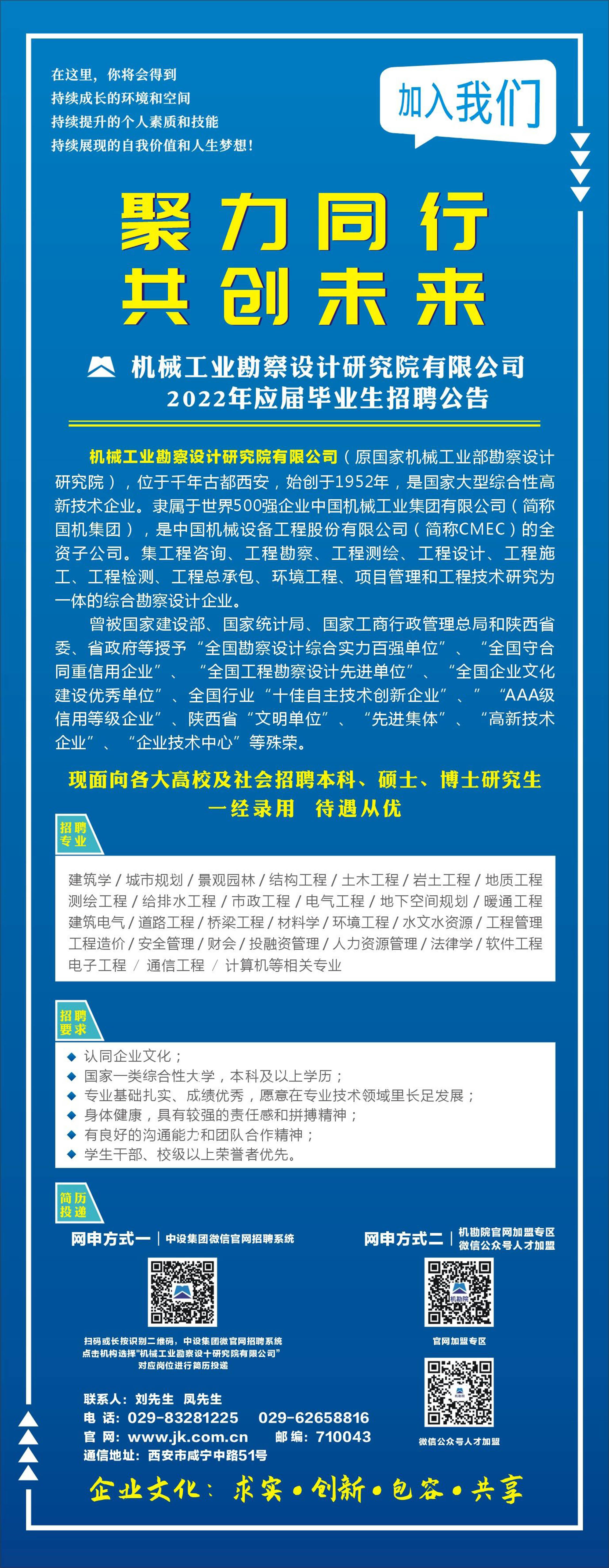 國機集團下屬機械工業勘察設計研究院有限公司2022年應屆畢業生招聘公告