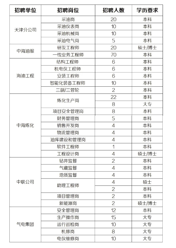 為(wei)深入貫徹(che)落實黨中央、國(guo)務院關于穩就(jiu)(jiu)(jiu)業(ye)工作、促進高校(xiao)(xiao)畢業(ye)生就(jiu)(jiu)(jiu)業(ye)的(de)(de)部署要(yao)求,中國(guo)海油(you)積極開展(zhan)穩崗擴就(jiu)(jiu)(jiu)業(ye)行動(dong),進一(yi)步挖掘(jue)崗位潛力,創造就(jiu)(jiu)(jiu)業(ye)崗位。即(ji)日起,中國(guo)海油(you)正式啟動(dong)2022年夏季校(xiao)(xiao)園招聘,新增300個就(jiu)(jiu)(jiu)業(ye)崗位,積極履行央企(qi)的(de)(de)經(jing)濟責(ze)任、政治(zhi)責(ze)任、社會責(ze)任,為(wei)就(jiu)(jiu)(jiu)業(ye)大局穩定貢獻力量。