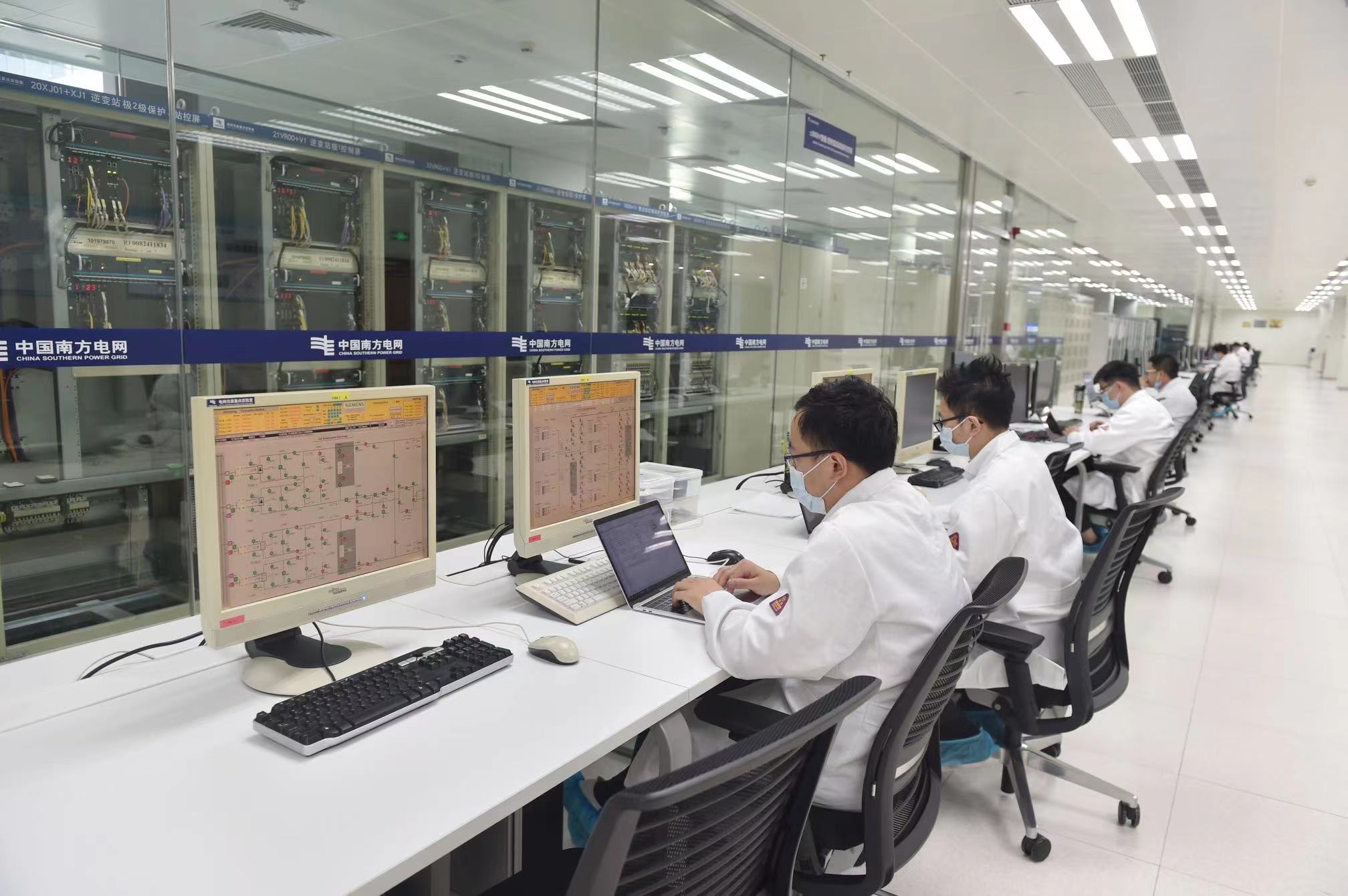 南方電網公司科技工作者在仿真實驗室進行項目科技攻關。
