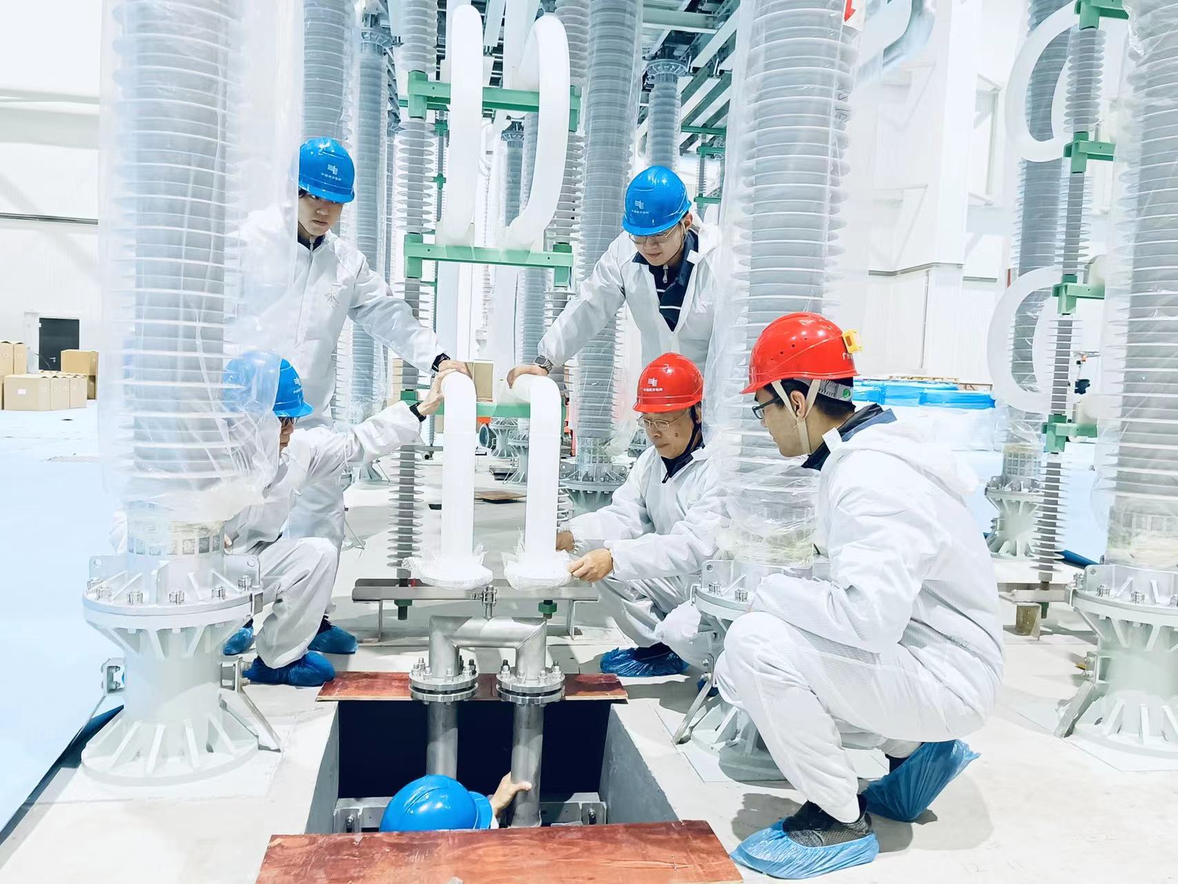 大灣區直流背靠背廣州工程項目部與生產準備團隊進行閥冷水管檢查。