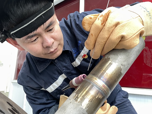 某大(da)修(xiu)低(di)低(di)水位(wei)(wei)(wei)期間(jian),3號(hao)機組汽(qi)輪機解(jie)體發現(xian)1號(hao)低(di)壓(ya)缸出(chu)(chu)現(xian)問題,急(ji)需檢(jian)修(xiu)。但當時(shi)受疫情(qing)防控影響(xiang),設備廠家無法到(dao)(dao)場(chang)支(zhi)援(yuan)。在(zai)接到(dao)(dao)核(he)(he)(he)電業(ye)主單位(wei)(wei)(wei)維修(xiu)需求后(hou),中核(he)(he)(he)檢(jian)修(xiu)福清(qing)分公(gong)司不等不靠,積極響(xiang)應,第一時(shi)間(jian)成(cheng)立以師(shi)延財(cai)為負責(ze)人的(de)“汽(qi)輪機低(di)壓(ya)缸轉(zhuan)葉(xie)緊急(ji)搶修(xiu)黨(dang)員突擊隊(dui)”,并到(dao)(dao)現(xian)場(chang)進行問題核(he)(he)(he)實,經過(guo)反復(fu)討論(lun),提出(chu)(chu)可行的(de)維修(xiu)方案。在(zai)實施過(guo)程中,師(shi)延財(cai)及隊(dui)員克服焊接完成(cheng)后(hou)定(ding)位(wei)(wei)(wei)鍵(jian)需與(yu)原圖紙(zhi)尺寸相(xiang)同,不能有(you)絲毫偏差;焊接過(guo)程中由于定(ding)位(wei)(wei)(wei)鍵(jian)寬(kuan)度僅為3mm,葉(xie)片、定(ding)位(wei)(wei)(wei)鍵(jian)、輪盤之間(jian)幾(ji)乎(hu)沒(mei)有(you)間(jian)隙(xi)等困難,連(lian)續(xu)奮戰,最終高(gao)質量完成(cheng)該項任務(wu)。事后(hou)有(you)人問起師(shi)延財(cai)“面(mian)對這么多不利因素,當時(shi)你們自己心里有(you)底嗎?”。他笑(xiao)一笑(xiao)說:“我們敬畏核(he)(he)(he)安(an)全(quan),既然做肯定(ding)是有(you)把握(wo)的(de)。還(huan)有(you)我們是黨(dang)員,關鍵(jian)時(shi)刻(ke)就要沖鋒(feng)在(zai)前,無所畏懼(ju)。”