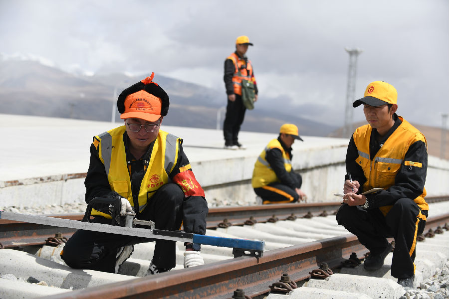 74公里常年凍(dong)土,72公里無(wu)人區(qu),每年8級大風70多(duo)次,最(zui)低氣溫零下47攝氏度,不到內地一半的含(han)氧量,6個(ge)全球海拔最(zui)高車站,36組(zu)道岔(cha)……這(zhe)是(shi)中鐵十二局鐵路養護(hu)公司安多(duo)車間的一組(zu)數(shu)字,這(zhe)里號稱“生(sheng)命禁(jin)區(qu)”。