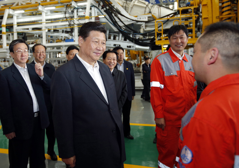 在中(zhong)鐵工(gong)程裝備集團有限公司盾(dun)(dun)構總裝車(che)間,習近平(ping)通過模型(xing)了解盾(dun)(dun)構機整體(ti)構造(zao)(zao)(zao)和工(gong)作原理,然后登上一(yi)座85米長的(de)盾(dun)(dun)構機裝配平(ping)臺,察看了裝配情況。他向現場科技(ji)(ji)(ji)(ji)人(ren)員和職(zhi)工(gong)問好,對他們攻(gong)克科研難(nan)題(ti)、突(tu)破(po)盾(dun)(dun)構機系(xi)統(tong)集成技(ji)(ji)(ji)(ji)術(shu)壁壘(lei)的(de)自主(zhu)創(chuang)(chuang)新給予肯(ken)定。習近平(ping)指出,裝備制(zhi)(zhi)(zhi)造(zao)(zao)(zao)業(ye)是一(yi)個國(guo)(guo)家制(zhi)(zhi)(zhi)造(zao)(zao)(zao)業(ye)的(de)脊梁,目前我(wo)國(guo)(guo)裝備制(zhi)(zhi)(zhi)造(zao)(zao)(zao)業(ye)還有許多短(duan)板(ban),要(yao)加大(da)投入、加強研發(fa)、加快發(fa)展,努力(li)占(zhan)領世界制(zhi)(zhi)(zhi)高點、掌控技(ji)(ji)(ji)(ji)術(shu)話(hua)語(yu)權,使(shi)我(wo)國(guo)(guo)成為(wei)現代(dai)裝備制(zhi)(zhi)(zhi)造(zao)(zao)(zao)業(ye)大(da)國(guo)(guo)。一(yi)個地(di)方、一(yi)個企業(ye),要(yao)突(tu)破(po)發(fa)展瓶頸、解決深層次矛盾(dun)(dun)和問題(ti),根本出路在于創(chuang)(chuang)新,關(guan)鍵要(yao)靠科技(ji)(ji)(ji)(ji)力(li)量。要(yao)加快構建以(yi)企業(ye)為(wei)主(zhu)體(ti)、市場為(wei)導向、產學研相結(jie)合的(de)技(ji)(ji)(ji)(ji)術(shu)創(chuang)(chuang)新體(ti)系(xi),加強創(chuang)(chuang)新人(ren)才隊伍建設,搭建創(chuang)(chuang)新服務(wu)平(ping)臺,推動(dong)科技(ji)(ji)(ji)(ji)和經濟緊密結(jie)合,努力(li)實現優勢(shi)領域、共性技(ji)(ji)(ji)(ji)術(shu)、關(guan)鍵技(ji)(ji)(ji)(ji)術(shu)的(de)重大(da)突(tu)破(po),推動(dong)中(zhong)國(guo)(guo)制(zhi)(zhi)(zhi)造(zao)(zao)(zao)向中(zhong)國(guo)(guo)創(chuang)(chuang)造(zao)(zao)(zao)轉變(bian)(bian)、中(zhong)國(guo)(guo)速(su)度向中(zhong)國(guo)(guo)質量轉變(bian)(bian)、中(zhong)國(guo)(guo)產品向中(zhong)國(guo)(guo)品牌轉變(bian)(bian)。