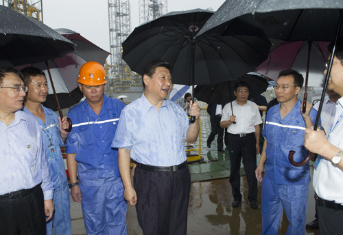 2013年8月28日,習近平考察中國船舶大連船舶重工集團海洋工程有限公司
