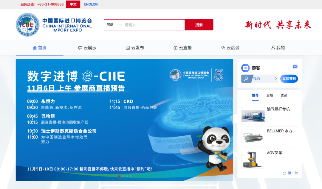 本屆進博會,國機集團協(xie)助中國國際進口博覽局打造并首次上線(xian)“數字進博”,搭建(jian)企業(ye)商(shang)業(ye)線(xian)上展示(shi)平臺,可(ke)供展商(shang)們在線(xian)云(yun)展示(shi)、云(yun)發布、云(yun)直播、云(yun)洽(qia)談,為經貿合作增添活(huo)力(li)。