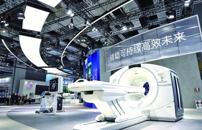 美國GE公司在進博會展臺展出的一臺大型醫療設備。新華社發