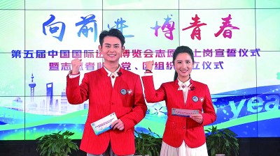 第五屆中國國際進口博覽會志愿者上崗宣誓儀式。共青團上海市委供圖