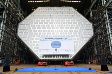 中國船舶集團所屬江南造船自主研發設計建造的搭載B型液艙的99000立方米超大型乙烷運輸船(VLEC),屬于江南液化氣船“Panda(熊貓)”品牌系列,配置4個江南造船擁有完全自主知識產權的低溫圍護系統“BrilliancE”B型液貨艙和2個C型甲板罐。該船突破了低溫圍護系統的關鍵技術,形成了VLEC和B型獨立液艙的關鍵技術體系,最大艙容達99000立方米,是世界上艙容最大的VLEC,綜合技術指標達到了國際領先水平。