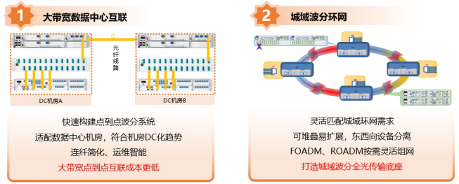 2.應用推廣領域:運營商數據中心互聯及城域全光網底座建設,電力、金融、互聯網等行業用戶的數據中心互聯。