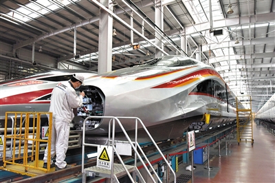 2023年1月4日,一名技術人員在查看“復興號”智能動車組。