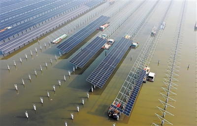 2023年1月5日拍攝的華電海晶光伏項目B標段現場(無人機照片)。