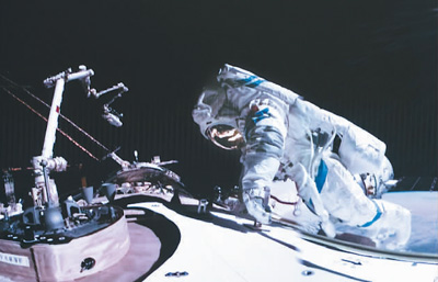 12月21日在北京航天飛行控制中心拍攝的神舟十七號航天員唐勝杰開展艙外操作的畫面。(新華社發)