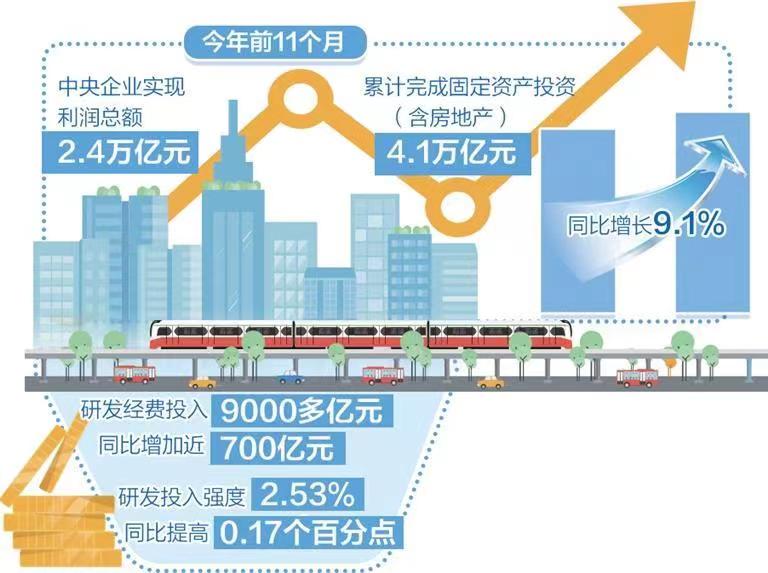 戰略性新興產(chan)業(ye)(ye)已(yi)成為(wei)大(da)國競相(xiang)角(jiao)逐的新賽道。在此背景下,國有(you)資本持續向(xiang)前(qian)(qian)瞻性戰略性新興產(chan)業(ye)(ye)集中。今年前(qian)(qian)11個月,中央企業(ye)(ye)研(yan)發(fa)經費投(tou)入9000多億(yi)(yi)元(yuan)、同比增加近700億(yi)(yi)元(yuan),研(yan)發(fa)投(tou)入強度2.53%、同比提高(gao)0.17個百分點。