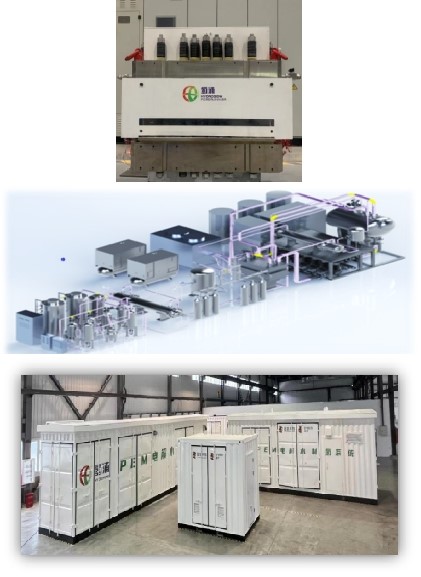 PEM制氫裝備自主化研制工作取得突破性進展,解決“卡脖子”技術,裝備產業鏈、供應鏈自主可控。現已掌握低銥催化劑、增強型質子交換膜、2500cm2超大面積高效膜電極等關鍵核心基礎材料研制技術;掌握電解槽封裝、承壓密封等核心工藝開發能力,配套高度集成的模塊化系統,可以提供覆蓋10~2000Nm3/h的制氫成套裝備。通過模塊化堆疊,可以打造十兆瓦~百兆瓦級的綠電制氫工廠,實現符合可再生能源電解制氫需求的自主化、低成本、高性能的PEM電解制氫裝備的研發和批量化生產。