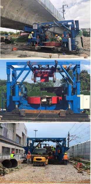 本技術產品適用于低凈空條件下的全套管灌注樁的施工。解決了鐵路、建筑和城市軌道交通行業中凈空受限條件下的套管鉆進和垂直度調節的難題,成果經盧春房等院士領銜的專家委員會鑒定為“國際領先”。本產品已應用于連鎮高鐵、南沿江高鐵、澳氹四橋等多個國家重難點工程項目,成功實現了凈空受限條件下套管垂直度的智能控制和低擾動施工,且不影響基礎設施的安全穩定運行,滿足了低凈空、低擾動、高精度的樁基施工需求,獲得人民網等權威媒體報道,經濟社會效益顯著,應用前景廣闊。