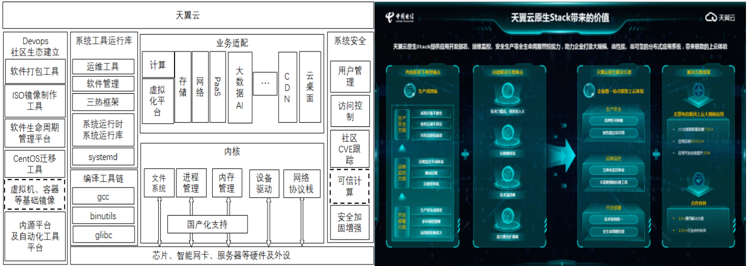 云基礎底座是由中國電信通過自主攻關高性能智能網卡、國產化云服務器操作系統、異構云原生PaaS平臺和企業級分布式數據庫等關鍵技術,突破云服務器操作系統cpu調度性能提升,智能網卡動態硬件卸載,云服務組件多云統一適配,數據庫全彈性擴展和超大表支持等難題,打造的全棧安全可信云基礎系統。